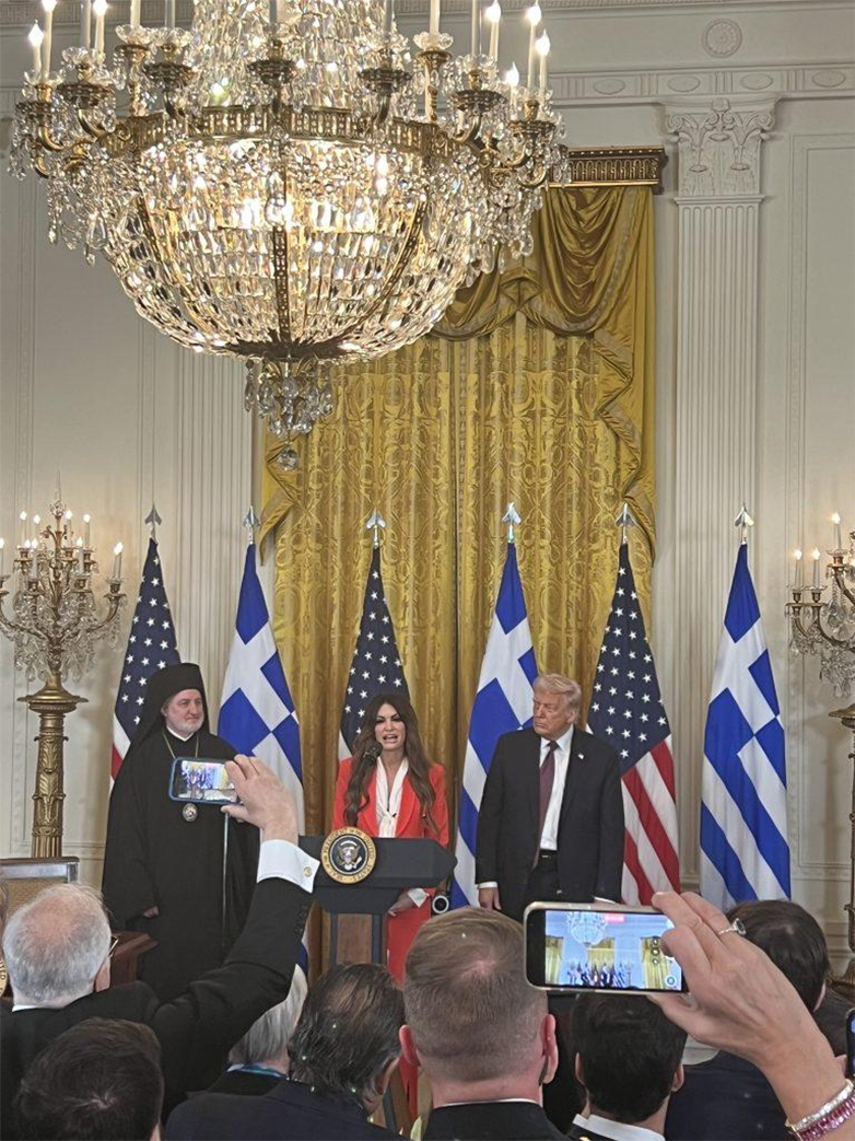 «Από την Ουάσινγκτον μέχρι το Σικάγο, από τη Νέα Υόρκη μέχρι το Ντιτρόιτ, από τη Φιλαδέλφεια μέχρι το διάσημο Τάρπον Σπρινγκς – ξέρετε όλοι για το Τάρπον Σπρινγκς στη Φλόριντα – οι Ελληνοαμερικανοί έχουν ευλογήσει τη χώρα μας με εξαιρετικό θάρρος, πατριωτισμό και απίστευτες ικανότητες. Υπό αυτή τη διακυβέρνηση, θα συνεχίσουμε να τιμούμε τις αρετές, τα ιδανικά και το πνεύμα αυτής της σπουδαίας κληρονομιάς, που είναι πραγματικά μεγαλειώδης και έχει ανθίσει εδώ και χιλιάδες χρόνια, από τη χρυσή εποχή της αρχαίας Ελλάδας μέχρι τη χρυσή εποχή της Αμερικής», ανέφερε μεταξύ άλλων ο κ. Τραμπ, έχοντας στο πλευρό του τον Αρχιεπίσκοπο Αμερικής κ. Ελπιδοφόρο.