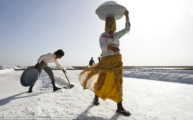 Mαζεύοντας αλάτι στην έρημο του δυτικού Gujarat στην Ινδία