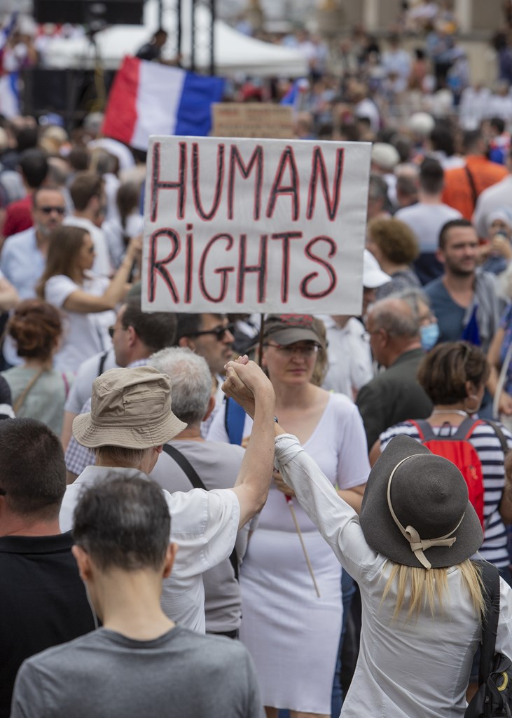“Έλευθερία, ελευθερία” φώναζαν οι διαδηλωτές, που είχαν έρθει από το Παρίσι και από την επαρχία και συγκεντρώθηκαν γύρω από μία εξέδρα όπου είχαν στηθεί δεκάδες γαλλικές σημαίες. “Ελευθερία, δεν είμαι το πειραματόζωό σου”, ήταν ένα από τα συνθήματα που αναγραφόταν σε ένα πανό.