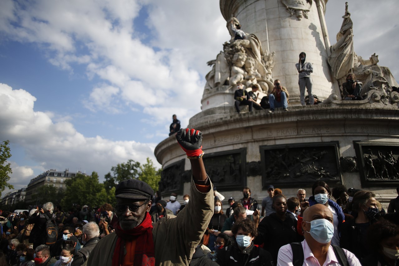 Κρατώντας πλακάτ με συνθήματα όπως «Σταματήστε την αστυνομική βία», «Σταματήστε τον ρατσισμό» και «Δεν μπορώ να αναπνεύσω», τις τελευταίες λέξεις του Φλόιντ προτού χάσει τις αισθήσεις του, οι διαδηλωτές έσκυψαν τα κεφάλια τους κάτω από το άγαλμα της Μαριάν, που προσωποποιεί τη Γαλλική Δημοκρατία, στην Πλας ντε λα Ρεπουμπλίκ.