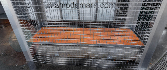 Έτσι, λοιπόν, την παραμονή των Χριστουγέννων συνεργεία έφραξαν τα παγκάκια βάζοντάς τα σε κλουβιά.