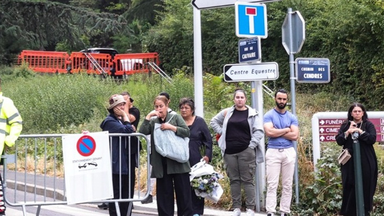Η κηδεία είχε αρχίσει το πρωί στο νεκροφυλάκειο της Ναντέρ σε κλίμα μεγάλης έντασης μεταξύ ομάδων νέων και του Τύπου, την παρουσία του οποίου δεν επιθυμούσε η οικογένεια, παρατήρησαν δημοσιογράφοι του Γαλλικού Πρακτορείου.
