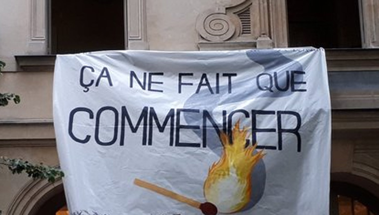 Η κατάληψη, που ξεκίνησε στις αρχές της εβδομάδας, είναι «ειρηνική, χωρίς να έχουν προκληθεί ζημιές ούτε βία», δήλωσε στο AFP το γραφείο επικοινωνίας της EHESS. Τα σεμιναριακά μαθήματα ακυρώθηκαν ή μεταφέρθηκαν αλλού, πρόσθεσε, υπενθυμίζοντας πως οι φοιτητές αυτού του ιδρύματος είναι διδακτορικοί φοιτητές, που δεν παρακολουθούν πολλά μαθήματα στα αμφιθέατρα.