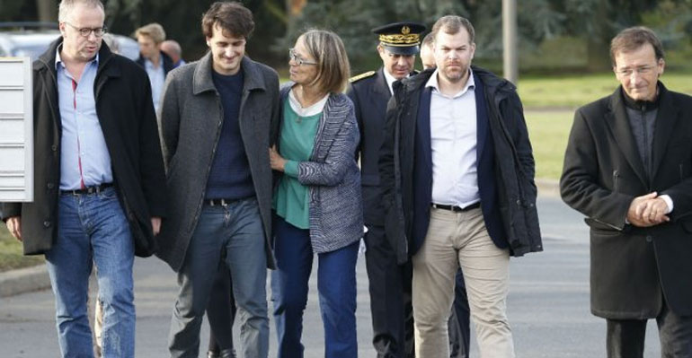 Τον νεαρό δημοσιογράφο υποδέχθηκαν στο αεροδρόμιο η οικογένειά του, η φίλη του και η υπουργός Πολιτισμού Φρανσουάζ Νισέν.