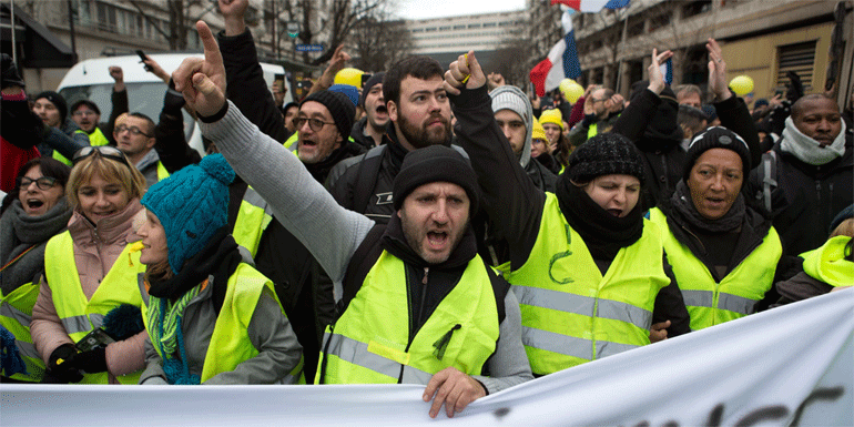 Τα «κίτρινα γιλέκα» διαδηλώνουν κάθε Σάββατο από τις 17 Νοεμβρίου διεκδικώντας κυρίως την αύξηση της αγοραστικής δύναμης. Η κινητοποίηση έχει μειωθεί σημαντικά τις τελευταίες εβδομάδες, αλλά πολλά Σάββατα έχουν αμαυρωθεί από βιαιότητες σε πολλές πόλεις. Η κυβέρνηση πέρασε έναν αμφιλεγόμενο «νόμο κατά των ταραξιών» τον Μάρτιο και έλαβε δραστικά μέτρα ασφαλείας.