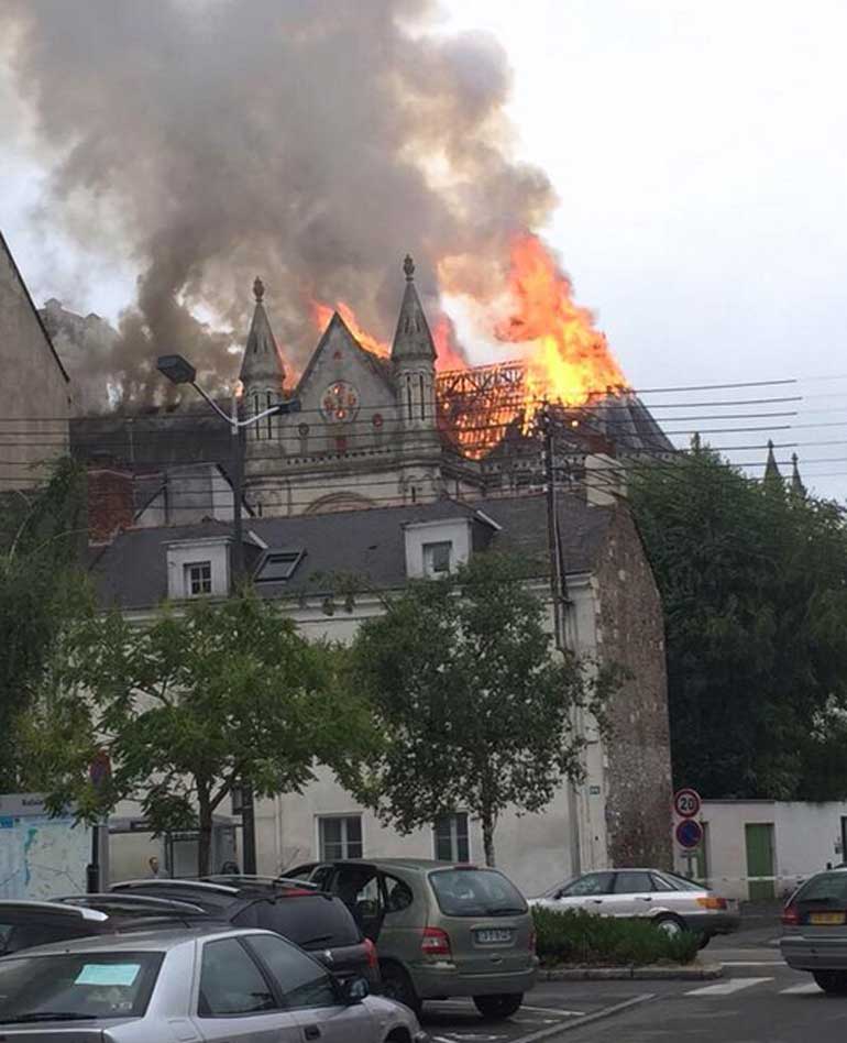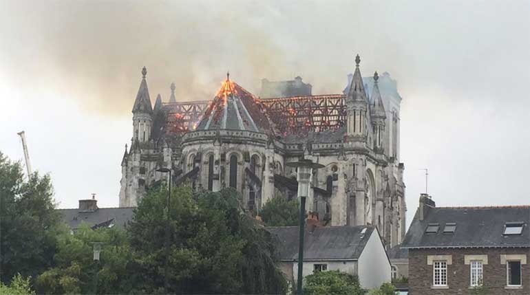 Στο έλεος μιας τεράστιας πυρκαγιάς βρέθηκε η βασιλική του Saint-Donatien στη Νάντ της δυτικής Γαλλίας.