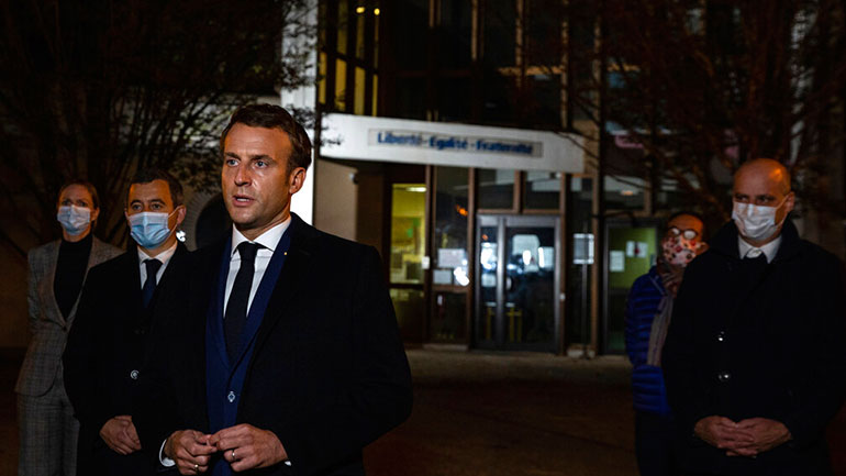 «Ένας από τους πολίτες μας δολοφονήθηκε σήμερα επειδή δίδασκε, επειδή δίδασκε στους μαθητές την ελευθερία της έκφρασης», τόνισε ο Μακρόν.