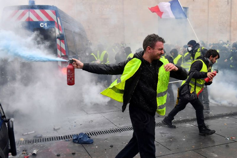 Επεισόδια ξέσπασαν λίγο πριν από το τέλος της πορείας των «κίτρινων γιλέκων», με τη συμμετοχή χιλιάδων ανθρώπων στο Μπορντό, μόλις το πλήθος έφθασε στην πλατεία του Δημαρχείου, όπου διαδηλωτές πέταξαν βόμβες μολότοφ, μετέδωσαν δημοσιογράφοι του Γαλλικού Πρακτορείου.