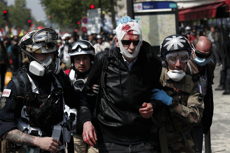 Σύμφωνα με έναν δημοσιογράφο του Γαλλικού Πρακτορείου ο Φιλιπ Μαρτινέ, ο γενικός γραμματέας του συνδικάτου CGT, αναγκάστηκε να εγκαταλείψει το μπλοκ του οποίου ήταν επικεφαλής, αφού δέχτηκε επίθεση από κάποιους ακραίους. Ένα μέλος του CGT που ήταν αυτόπτης μάρτυρας του επεισοδίου είπε ότι ακριβώς πριν ξεκινήσει η πορεία ο συνδικαλιστής βρέθηκε εν μέσω των συγκρούσεων μεταξύ των «Black Blocs» και των δυνάμεων ασφαλείας. Κατάφερε να υποχωρήσει σε ένα γειτονικό δρόμο όπου όμως «μια ομάδα ατόμων» άρχισε να εκτοξεύει μπουκάλια εναντίον του.