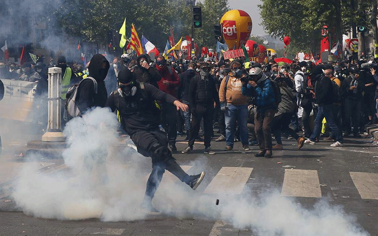Σε τεταμένη ατμόσφαιρα, χιλιάδες άνθρωποι διαδηλώνουν σήμερα σε όλη τη Γαλλία για να τιμήσουν την Εργατική Πρωτομαγιά και στο Παρίσι σημειώθηκαν συγκρούσεις μεταξύ των ακροαριστερών «Black Blocs» και της αστυνομίας.