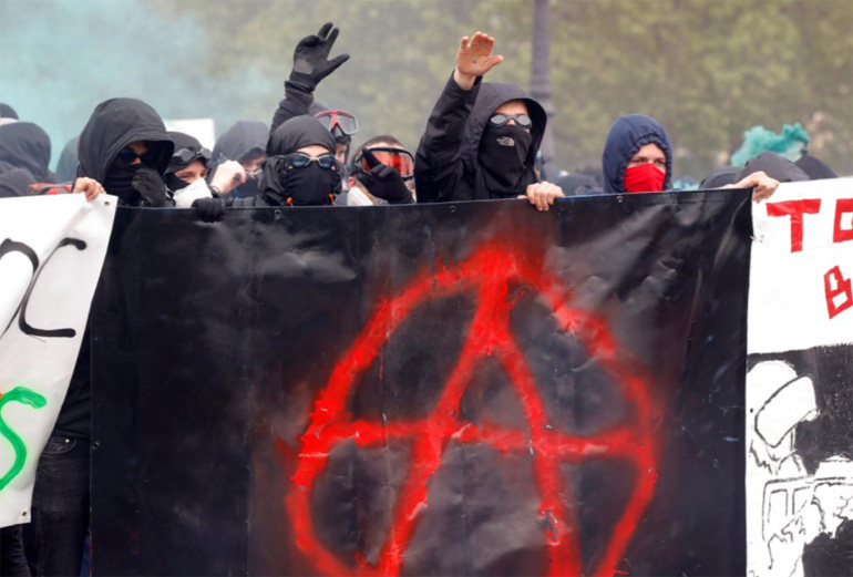 Τη γέφυρα όμως είχαν μπλοκάρει 1.200 κουκουλοφόροι γνωστοί ως «Black blocks» αποφασισμένοι να «προσφέρουν» μια μέρα «κόλασης» στον Ε. Μακρόν και «στον κόσμο του», όπως είχαν δηλώσει στο Facebook μέσω του ακροαριστερού κινήματος Mili (Mouvement inter luttes indépendant- Ανεξάρτητο κίνημα εσωτερικών αγώνων).