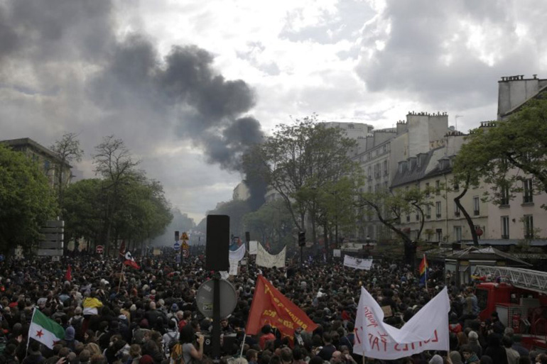 Με επεισόδια πρωτοφανούς βιαιότητας τερμάτισε στο Παρίσι η πορεία για την εργατική Πρωτομαγιά, χωρίς να κατορθώσουν οι διαδηλωτές να φθάσουν στον αρχικό προορισμό τους νότια της πρωτεύουσας. Σύμφωνα με την προβλεπόμενη διαδρομή έπρεπε να περάσουν από τη γέφυρα του Austerlitz που ενώνει τη δεξιά όχθη του Σηκουάνα, όπου βρίσκεται το σημείο εκκίνησης στην πλατεία της Βαστίλης, με την αριστερά.