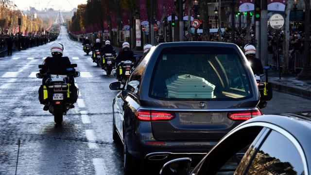 Συνοδευόμενη από 700 μοτοσικλετιστές με μαύρα περιβραχιόνια, η νεκροφόρα που μετέφερε το λευκό φέρετρο διέσχισε τη λεωφόρο των Ηλυσίων, υπό τις ζητωκραυγές του τεράστιου πλήθους. Η πομπή κατέληξε στην εκκλησία Μαντελέν, στο κέντρο της πρωτεύουσας, όπου τελέστηκε η κηδεία παρουσία της οικογένειας του καλλιτέχνη, πολλών καλλιτεχνών και πολιτικών.