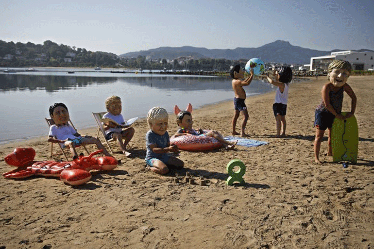 Διαδηλωτές συγκεντρώθηκαν στη πόλη Εντάι στη γαλλική μεθόριο με την Ισπανία για να διαμαρτυρηθούν κατά της οικονομικής και κλιματικής πολιτικής που ακολουθούν οι πιο ανεπτυγμένες βιομηχανικά χώρες και για να προωθήσουν εναλλακτικές πολιτικές.