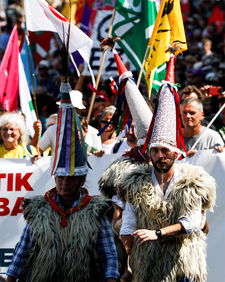 Οι διαδηλωτές πραγματοποίησαν πορεία από την πόλη Εντάι ως την πόλη Ιρούν της Ισπανίας, περίπου 30 χλμ νοτίως της Μπιαρίτς.