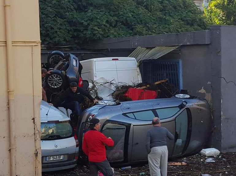 Εφιαλτική είναι η κατάσταση στη γαλλική Ριβιέρα εξαιτίας των πλημμυρών που προκλήθηκαν από καταρρακτώδεις βροχοπτώσεις.