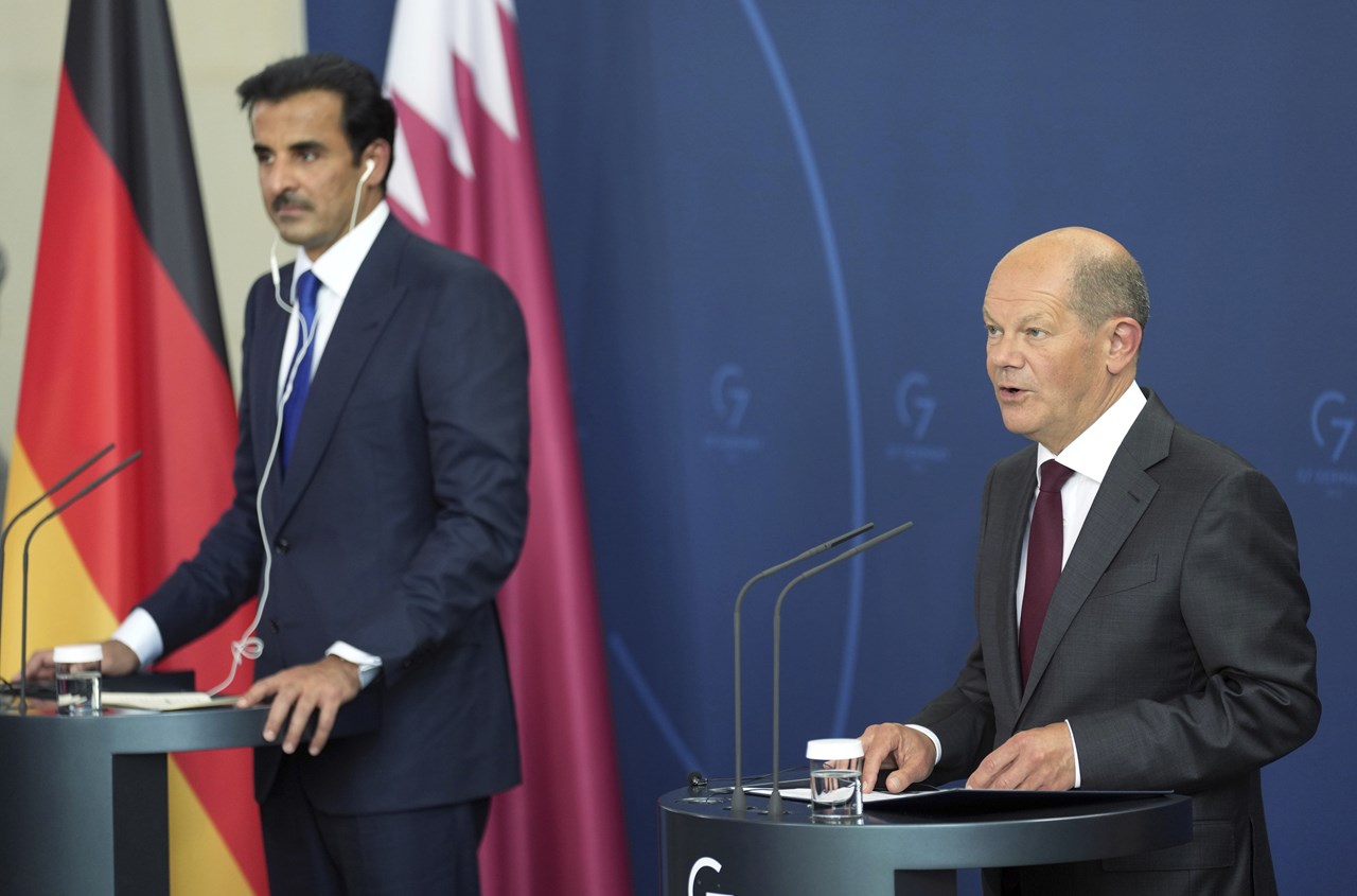«Το Κατάρ έχει τεράστιες δυνατότητες στις ανανεώσιμες πηγές ενέργειας, ειδικά στην παραγωγή “πράσινου” υδρογόνου» και η ομοσπονδιακή κυβέρνηση ενδιαφέρεται να τις αξιοποιήσει, δήλωσε ο καγκελάριος Όλαφ Σολτς κατά τη διάρκεια συνέντευξης Τύπου που παραχώρησε με τον Εμίρη του Κατάρ, Ταμίμ Μπιν Χαμάντ Αλ Θάνι. Η προμήθεια του LNG θα ξεκινήσει από το 2024.