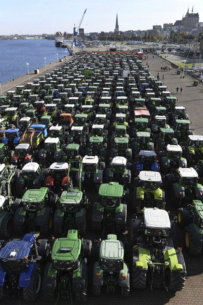 Στη διαδήλωση στην πόλη Μίνστερ, στη βόρεια Γερμανία, συμμετείχαν τουλάχιστον 950 τρακτέρ, σύμφωνα με την αστυνομία.
