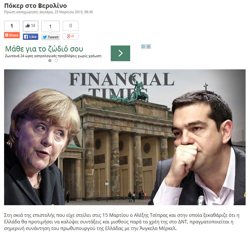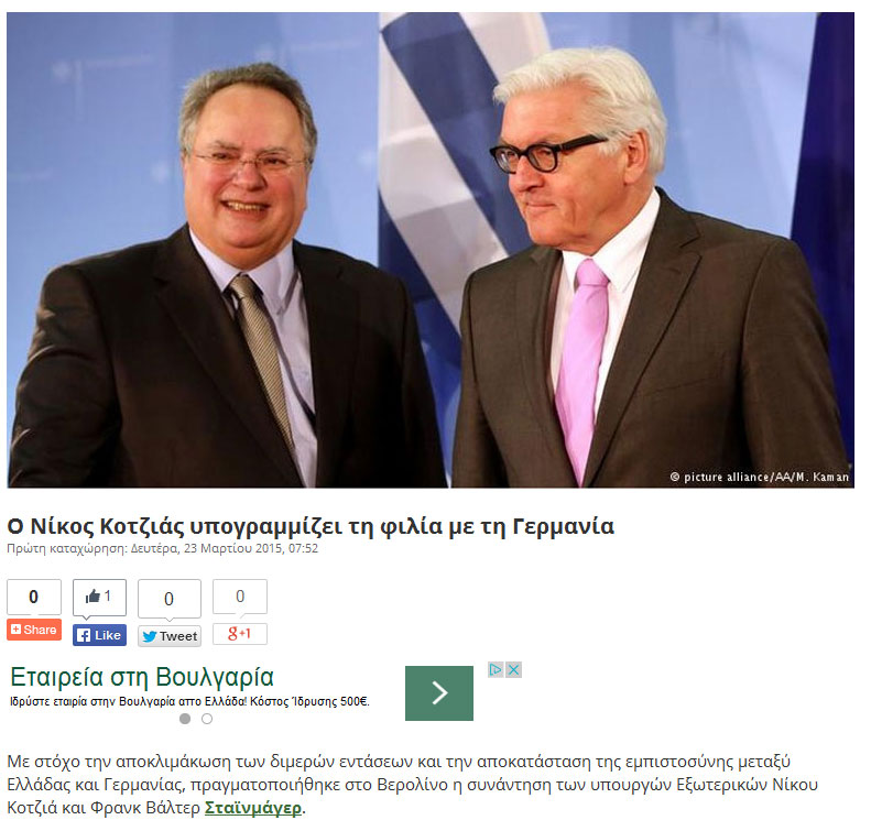 Ωστόσο, κάτι φαίνεται πως αλλάζει στη γερμανική στάση απέναντι στην Ελλάδα, καθώς η Bild (γερμανική εφημερίδα με παραδοσιακά προκλητική στάση απέναντι στην Αθήνα) καλοδέχεται τον Αλέξη Τσίπρα στη Γερμανία, αφιερώνοντάς του ένα πρωτοσέλιδο στα ελληνικά.