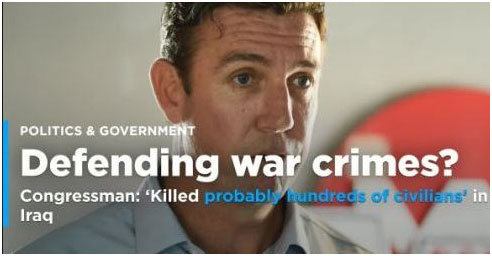 Σάλο έχουν προκαλέσει οι δηλώσεις του Ρεπουμπλικάνου γερουσιαστή της Καλιφόρνια Duncan Hunter ο οποίος αναγνώρισε κατά τη διάρκεια συνέντευξης ότι μονάδα πεζοναυτών στην οποία ήταν επικεφαλής «σκότωσε πιθανώς εκατοντάδες πολίτες» κατά τη διάρκεια της πρώτης μάχης της Φαλούτζα το 2004.