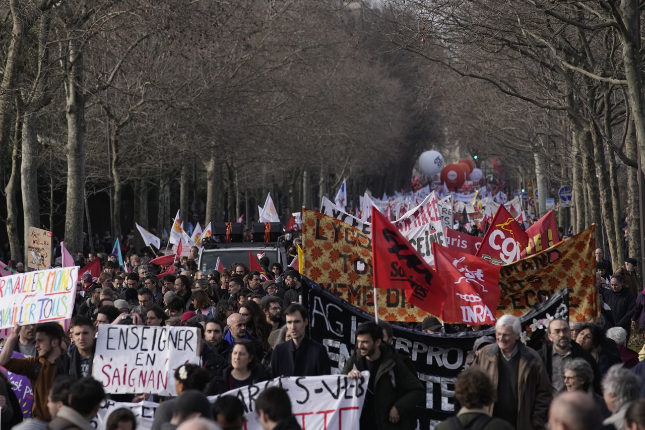 Για πέμπτη φορά κατά το τελευταίο εικοσαήμερο τα εργατικά συνδικάτα της Γαλλίας διοργάνωσαν συγκεντρώσεις διαμαρτυρίας κατά του νομοσχεδίου για την αναμόρφωση του συνταξιοδοτικού συστήματος της χώρας, το οποίο μεταξύ άλλων προβλέπει την αύξηση του ορίου ηλικίας συνταξιοδότησης από τα 62 χρόνια που είναι σήμερα στα 64 χρόνια.