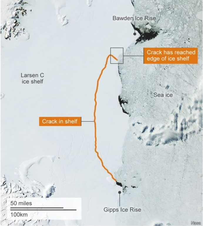Η τελευταία αποτελεί μια επιπλέουσα προέκταση των παγετώνων της ηπειρωτικής Ανταρκτικής και η αποκοπή από αυτήν ενός τόσο μεγάλου παγόβουνου, θα μπορούσε να την καταστήσει ασταθή και επιρρεπή στη «γέννηση» και άλλων παγόβουνων.