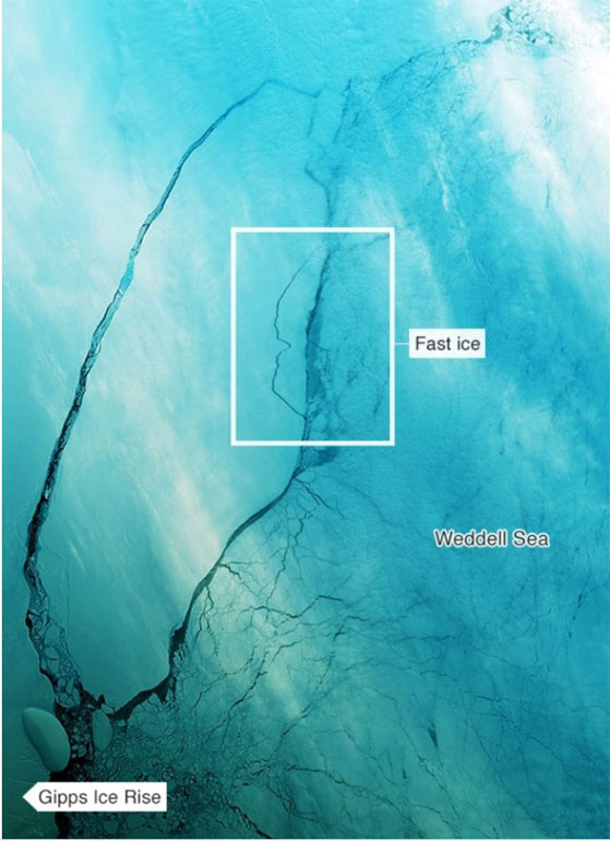 Αλλά, όπως δείχνουν οι τελευταίες εικόνες από δορυφόρους, το παγόβουνο, που έχει έκταση σχεδόν 6.000 τετραγωνικών χιλιομέτρων, κινείται πλέον βόρεια προς τη θάλασσα Γουέντελ.