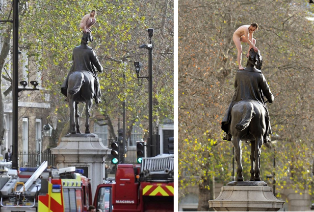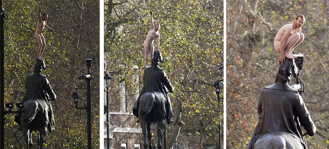 Μέχρι στιγμής τα κίνητρα του… γυμνού καβαλάρη παραμένουν άγνωστα, ενώ όπως μετέδωσε το βρετανικό τηλεοπτικό δίκτυο BBC, υπήρχε αρχικά η εντύπωση πως είχε στην κατοχή του ένα μαχαίρι. Σύμφωνα με δημοσίευμα της βρετανικής «telegraph» ο άνδρας, ο οποίος συνελήφθη μόλις κατέβηκε από το άγαλμα, αναμένεται να αντιμετωπίσει κατηγορίες και για φθορά του ιστορικού μνημείου καθώς όπως φαίνεται και στις φωτογραφίες προκάλεσε ζημιές στην προσπάθειά του να σκαρφαλώσει στην κορυφή του.