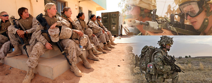 Στις χώρες που σήμερα επιτρέπουν στις γυναίκες να πολεμήσουν εκεί συγκαταλέγονται οι ΗΠΑ, ο Καναδάς, η Δανία και η Νέα Ζηλανδία.