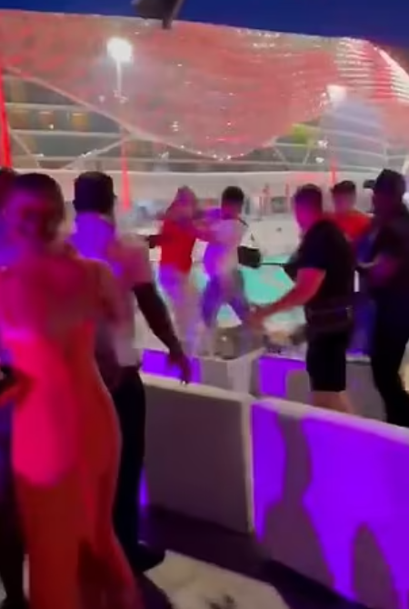 Πλάνα από βίντεο που κυκλοφόρησαν, δείχνουν τους θαμώνες του πάρτι να χωρίζονται σε ομάδες ,να πετούν μεταξύ τους μπουκάλια αλκοόλ και να σκαρφαλώνουν πάνω σε έπιπλα για να δουν ο ένας τον άλλον.