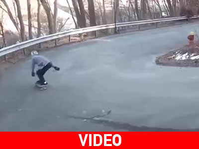 Ένα πραγματικά συγκλονιστικό βίντεο που κυκλοφορεί στο Διαδίκτυο δείχνει την κατάβαση δύο skaters σε έναν παγωμένο δρόμο που καταλήγει σε μια διασταύρωση με λεωφόρο διπλής κατεύθυνσης.