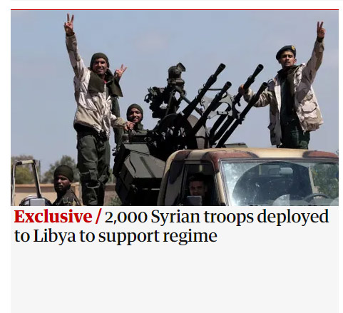 Σύμφωνα με την εφημερίδα, οι πρώτοι 300 μαχητές του Συριακού Εθνικού Στρατού – ουσιαστικά των ισλαμιστών ανταρτών – κατέφθασαν στη Λιβύη την παραμονή των Χριστουγέννων, ενώ ακόμη 350 ακολούθησαν στις 29 Δεκεμβρίου. Στη συνέχεια μεταφέρθηκαν στην Τρίπολη, όπου τοποθετήθηκαν στην πρώτη γραμμή της άμυνας της πόλης στα ανατολικά.
