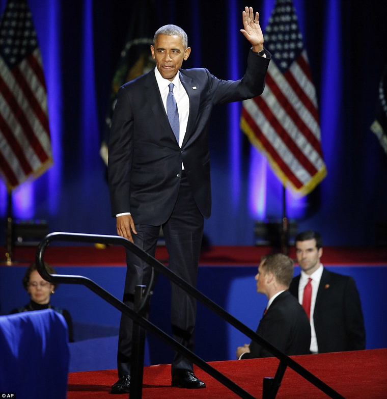 Ο απερχόμενος πρόεδρος των Ηνωμένων Πολιτειών Μπαράκ Ομπάμα ξεκίνησε την ομιλία στην πόλη όπου εκλέχθηκε γερουσιαστής, το Σικάγο, σε ένα κατάμεστο ακροατήριο με ένα «ευχαριστώ» στον αμερικανικό λαό, «είτε συμφωνήσαμε, είτε όχι». «Οι συνομιλίες μαζί σας με κράτησαν ειλικρινή, εμπνευσμένο και με τη δύναμη να συνεχίσω» είπε, προσθέτοντας ότι «με κάνατε καλύτερο πρόεδρο».