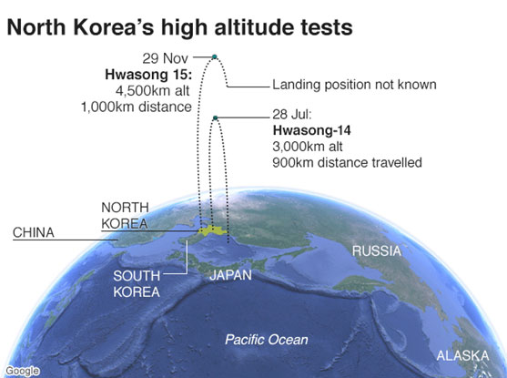 Η Βόρεια Κορέα πιστεύεται ευρέως ότι διαθέτει πυραύλους ικανούς να επιτύχουν στόχους μεγάλης εμβέλειας, συμπεριλαμβανομένων ενδεχομένως των ΗΠΑ.