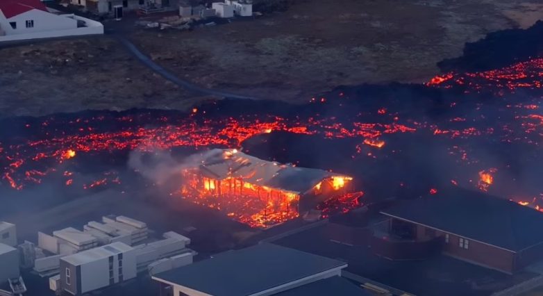 Παρά τις προσπάθειες των εργατών να χτίσουν ένα αμυντικό φράγμα, η λάβα ρέει προς τα σπίτια στο βορειότερο άκρο της πόλης και τα κάνει στάχτη μέσα σε λίγα λεπτά.