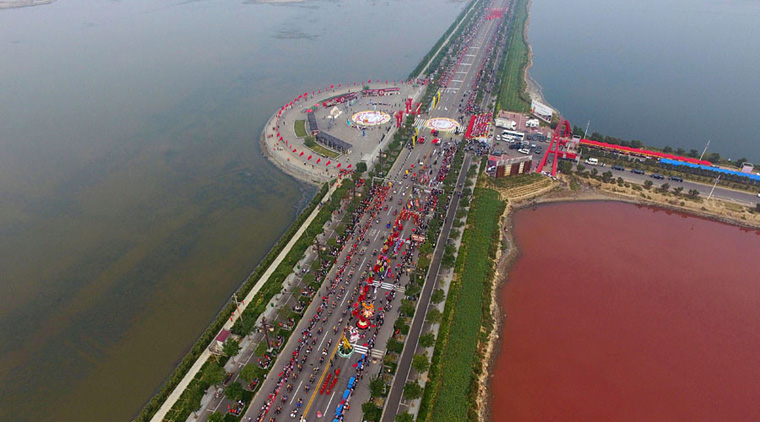 Η λίμνη Salt Lake της Yuncheng, γνωστή και ως κινεζική «Νεκρά Θάλασσα», έχει καταστεί αρκετά δημοφιλής προορισμός για χιλιάδες τουρίστες.