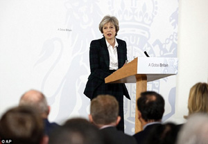 Σύμφωνα με την Τερέζα Μέι το αποτέλεσμα του δημοψηφίσματος για το Brexit δεν οδηγεί στην εσωστρέφεια, «δεδομένου ότι τόσο η ιστορία όσο και ο πολιτισμός της Βρετανίας είναι βαθιά διεθνιστική».