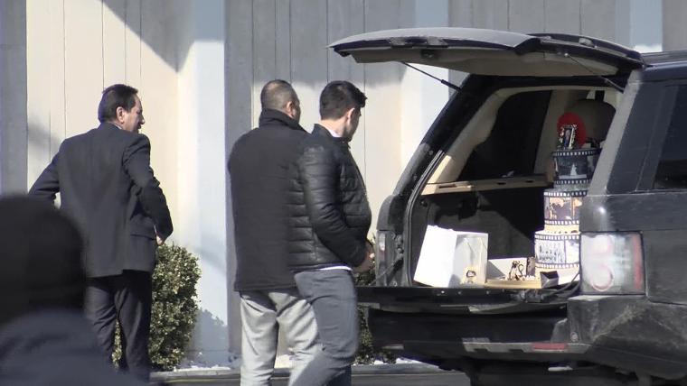 Έπειτα από αυτές τις ειδυλλιακές στιγμές η κάμερα απαθανάτισε τα αυτοκίνητα της συνοδείας του με γεμάτα τα πορτμπαγκάζ από γλυκά και τούρτες.