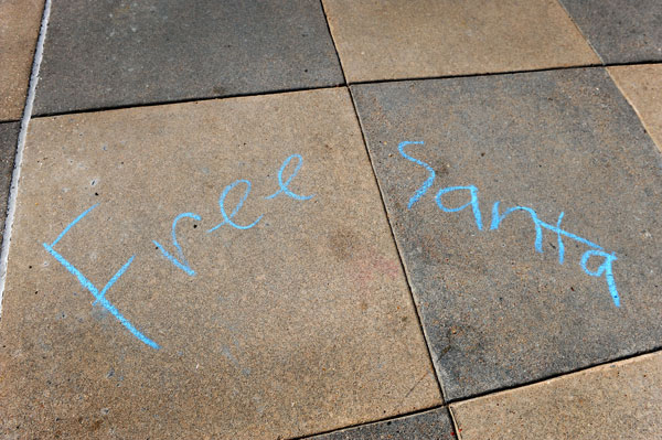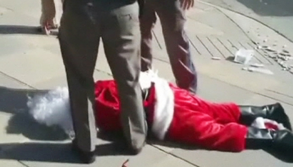 Το γεγονός ότι φορούσε τη στολή του Άγιου Βασίλη δεν απέτρεψε τους αστυνομικούς από το να του πουν: «Έχεις το δικαίωμα να μην μιλήσεις».