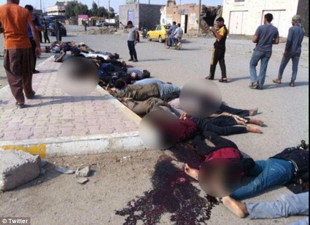Οι τζιχαντιστές δημοσιοποίησαν φωτογραφίες και βίντεο που δείχνουν περισσότερους από 30 νεκρούς να κείτονται στη μέση ενός αιματοβαμμένου δρόμου. Τα χέρια τους είναι δεμένα, τα μάτια καλυμμένα και τα πόδια τους γυμνάΣτις τελευταίες φωτογραφίες, που δημοσιοποιήθηκαν την Κυριακή, απεικονίζονται περισσότεροι από 30 νεκροί, μέλη της φιλοκυβερνητικής σουνιτικής φυλής Άλμπου Νιμρ, να κείτονται στη μέση ενός αιματοβαμμένου δρόμου. Τα χέρια τους είναι δεμένα πίσω από την πλάτη, τα μάτια καλυμμένα και τα πόδια τους γυμνά.