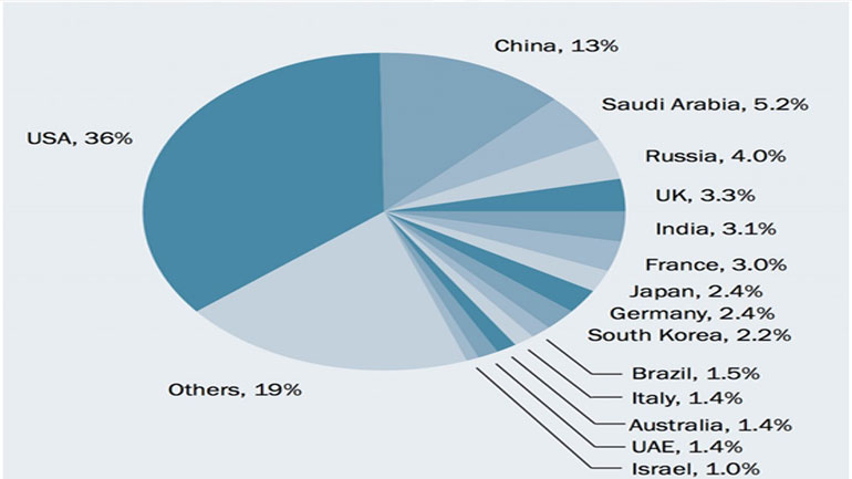 Οι Ηνωμένες Πολιτείες, ήδη δαπανούν περισσότερα από $600 δισεκατομμύρια το χρόνο, για στρατιωτικές δαπάνες, ποσό σημαντικά μεγαλύτερο κι από τις επόμενες πέντε χώρες στον κατάλογο των παγκόσμιων αμυντικών δαπανών συμπεριλαμβανομένων της Κίνας και τη Ρωσίας. Και ο Τραμπ επιδιώκει αύξηση κατά άλλα $54 δισεκατομμύρια.