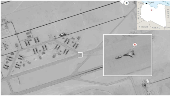 Πέντε ημέρες μετά την ανάρτηση στο διαδίκτυο της πληροφορίας περί αποστολής ρωσικών μαχητικών MIG 29 και Sukhoi 24 από τη Συρία στη Λιβύη, η Διεύθυνση Αφρικής του Αμερικανικού Πενταγώνου σε tweet που ανάρτησε το μεσημέρι της Τρίτης 26 Μαίου δημοσιεύει φωτογραφίες από δορυφόρο που δείχνουν ρωσικό μαχητικό να βρίσκεται προσγειωμένο σε αεροδρόμιο της Λιβύης από εκείνα που ελέγχει ο στρατός του Χαλίφα Χαφτάρ.