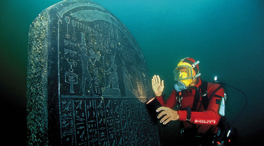 Ο Goddio, πρόεδρος και ιδρυτής του Ευρωπαϊκού Ινστιτούτου Υποβρύχιας Αρχαιολογίας, πραγματοποίησε ανασκαφές σε πάνω από 12 ναυάγια προτού στρέψει το 1996 την προσοχή του στις εν λόγω πόλεις, που καλύπτουν ίδια έκταση με το Παρίσι. Κι όμως, το έργο του αρχαιολόγου κάθε άλλο παρά έχει τελειώσει, καθώς ο ίδιος εκτιμά πως έχει φέρει στο φως μόλις το 5% του μνημείου.
