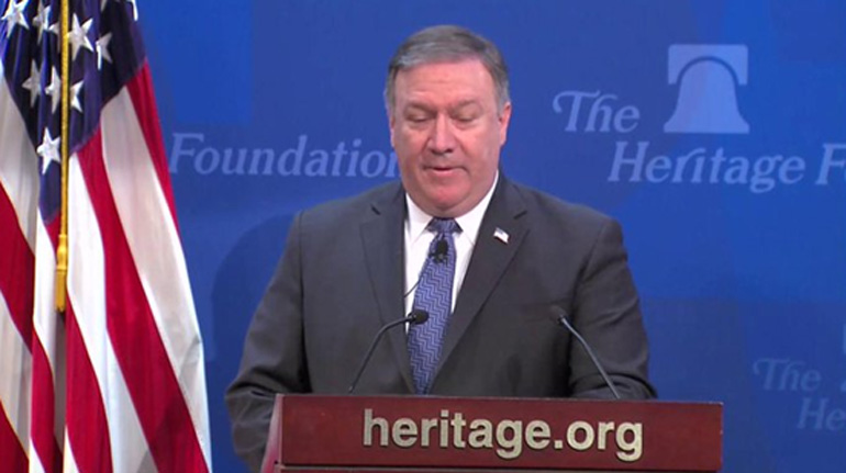 «Η Τεχεράνη θα αγωνισθεί πολύ σκληρά για να διατηρήσει την οικονομία της ζωντανή λόγω των ισχυρότερων αντιποίνων στην ιστορία, αν δεν συμμορφωθεί με τις 12 ‘βασικές απαιτήσεις’ της Ουάσινγκτον», όπως είπε ο Μάικ Πομπέο μιλώντας στο Heritage Foundation, ίδρυμα ακροδεξιάς ομάδας «Δεξαμενής Σκέψης». Στους αμερικανικούς όρους συμπεριλαμβάνονται: