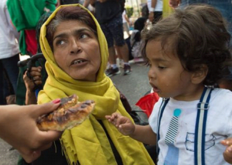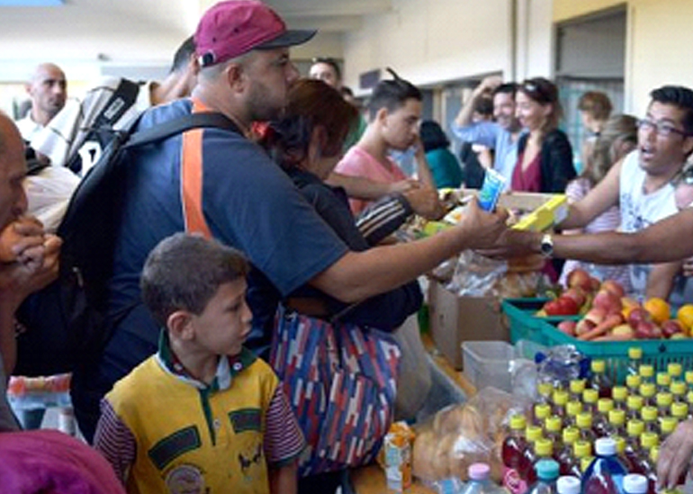 Εκείνοι που κατορθώνουν να περάσουν μέσω ουγγρικών συνόρων στη Βιέννη, συναντούν ομάδες εθελοντών που τους προσφέρουν φρούτα και νερό.