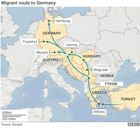 Η διαδρομή των μεταναστών προς την Γερμανία