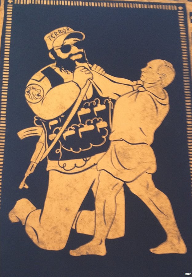 Στη Μόσχα, μια έκθεση παρουσιάζεται με τη μορφή ζωγραφικών απεικονίσεων των «δώδεκα άθλων του Πούτιν» : Ο Ρώσος πρόεδρος απεικονίζεται να στραγγαλίζει έναν τρομοκράτη ή αντιμετωπίζει με ξίφος και ασπίδα τη Λερναία Ύδρα, τα κεφάλια της οποίας –Ευρωπαϊκή Ένωση, Καναδάς ή Ιαπωνία– φτύνουν «κυρώσεις» .