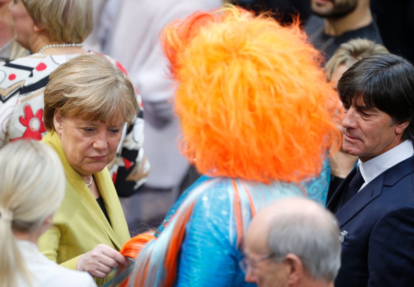 Η Ολίβια Τζόουνς, κατά κόσμον Oliver Knöbel, φωτογραφήθηκε με την πολιτειακή ηγεσία της Γερμανίας, τον νέο Πρόεδρο αλλά και την καγκελάριο Άγκελα Μέρκελ η οποία, όπως φαίνεται και από τις φωτογραφίες θέλησε να αγγίξει τα περίεργα, γεμάτα φτερά και πούπουλα ρούχα της!