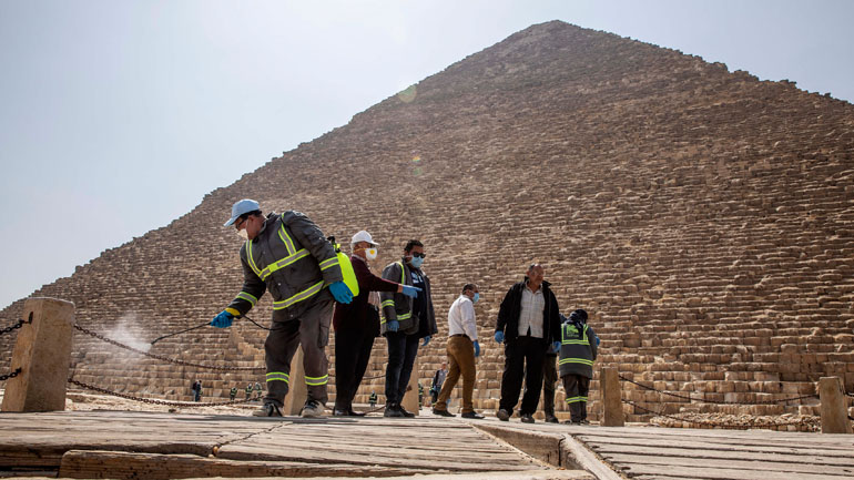 Στην απολύμανση όλης της περιοχής των Πυραμίδων προχώρησε η αιγυπτιακή κυβέρνηση ως ένα ακόμα μέτρο για τον περιορισμό της εξάπλωσης του κορωνοϊού.
