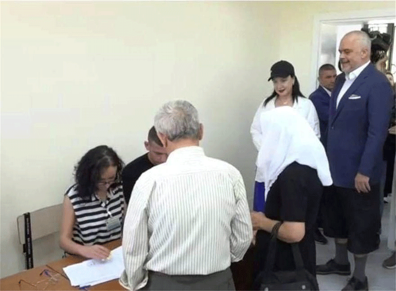 Ο Ράμα, εμφανίστηκε στο εκλογικό κέντρο σε ένα χωριό κοντά στα Τίρανα, φορώντας σακάκι και πουκάμισο, μια μακριά βερμούδα και κάλτσες μέχρι τον αστράγαλο.